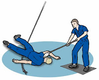 2- شخص برق گرفته در کنار کابل برق افتاده اما بدن او با جريان برق تماس ندارد. در اينحالت شخص نجات دهنده بايد از نزديک شدن به مصدوم خودداري کرده و توسط عصا ، چوب ، طناب عايق يا ... مصدوم را به اندازه کافي از کابل دور نموده و کمکهاي اوليه را آغاز کند